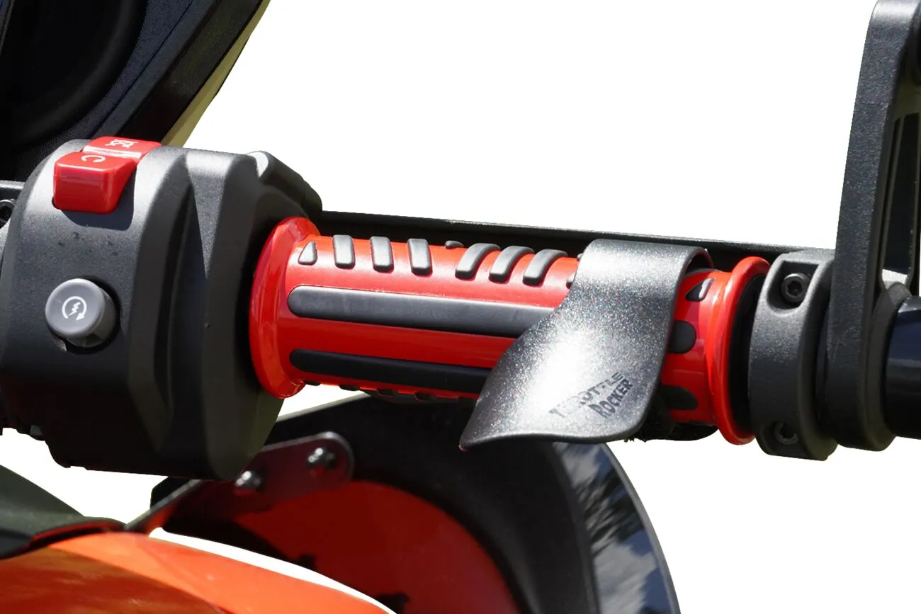 Deje que el peso de su mano haga el trabajo sin apretar el puño, ayudando a evitar calambres y dolores articulares Moldeado específicamente para acelerador de mano derecha Incluye banda para instalación rápida y sencilla, ¡sin herramientas! Para uso en puños con diámetro de 1-3/8" o mayor.
