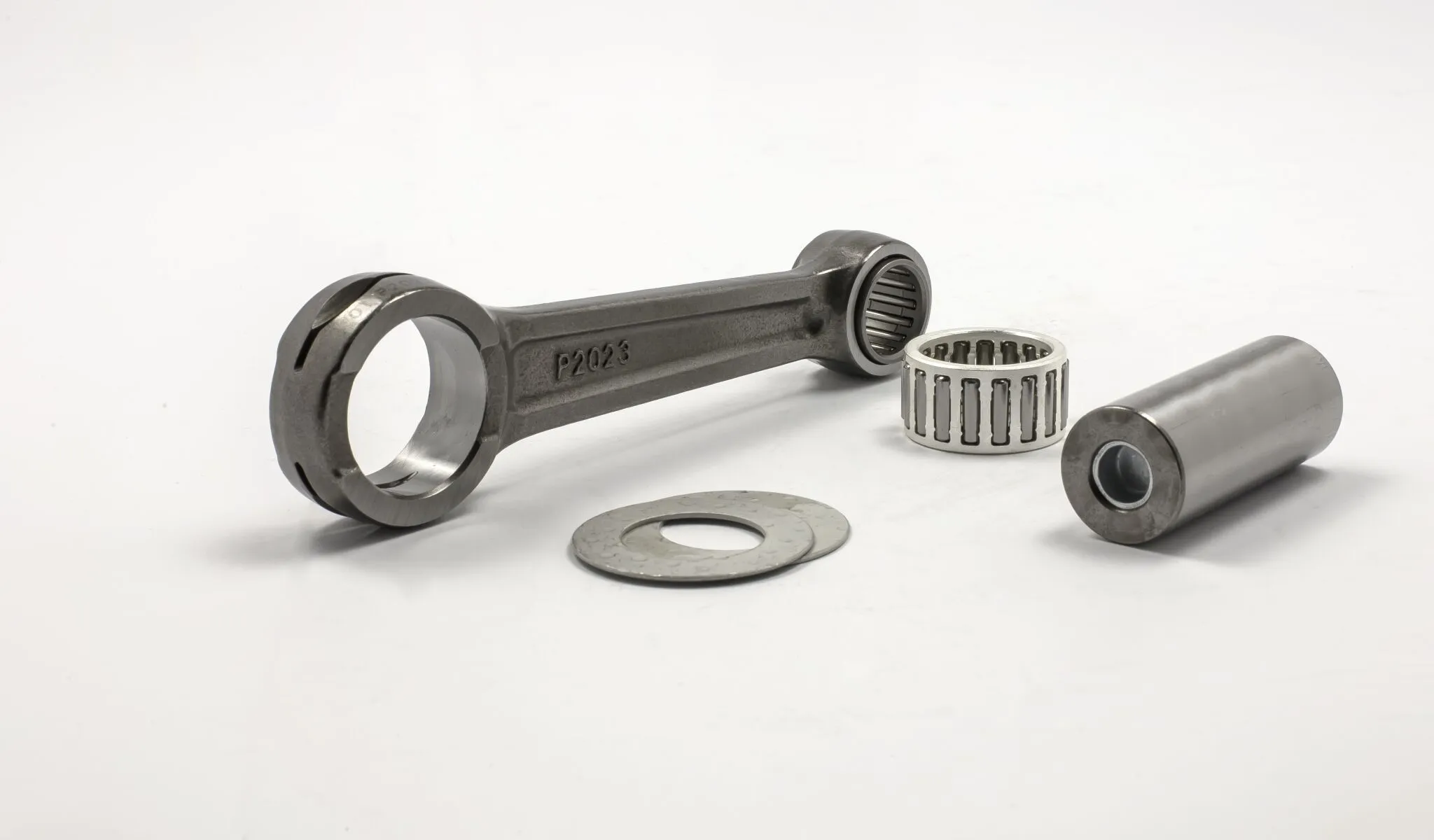 Fabricado con tolerancias precisas a partir de materiales de primera calidad Las bielas de 2 tiempos Wössner se suministran siempre con bulones, rodamientos de agujas, cojinetes de biela y separadores Las bielas Wössner para 4 tiempos incluyen bulón de cigüeñal y cojinetes de biela Otras piezas como casquillos o rodamientos para el ojo grande de la biela y arandelas de empuje no se pueden separar