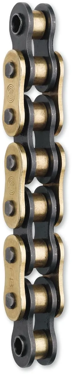 La cadena sellada más fuerte y duradera que ofrecemos; nuestro modelo tope de gama FB = Fine Blanking, proceso de fabricación de alta precisión que produce eslabones perfectamente cortados Tolerancias ajustadas garantizan una unión precisa y resistente entre placa, bulón y casquillo Por la precisión de los cortes y el uso de acero aleado más resistente, la FB tiene nuestra mayor resistencia a la tracción, casi 8.000 lb. Anillos de sellado especiales tratados químicamente para mayor resistencia y menor fricción El tratamiento FB permite impregnar los retenes O-ring con grasa Los aros FB son más resistentes y duraderos que los X-rings, con mucha menos fricción Eslabones y rodillos dorados, placas internas, pasadores y casquillos plateados Incluye eslabón de unión tipo clip Recomendado para aplicaciones de 450cc en adelante Eslabón de conexión de repuesto disponible UE: Gracias a la precisión en el corte y el uso de una aleación de acero más resistente, la cadena FB ofrece nuestro valor más alto en resistencia a la tracción, casi 3628,74 kg