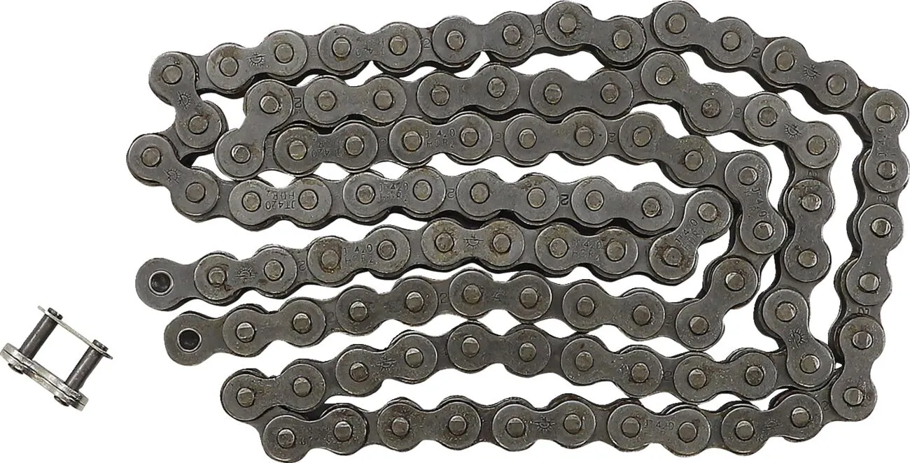 JT Chains produce una gama completa de cadenas de motocicleta de alta calidad utilizando tecnología avanzada y aceros especiales de primera calidad Las especificaciones de las cadenas JT advanced power transfer cumplen o superan los requisitos de todas las motos modernas, street, MX, enduro, offroad y ATV Gama completa de tipos de cadena, desde ciclomotores de 50cc hasta superbikes de más de 200 CV, en acabado acero o dorado Tecnología de vanguardia en materiales y fabricación para máximo rendimiento, resistencia y durabilidad Diseñada para competir favorablemente con cualquier tipo y marca de cadena de moto del mercado