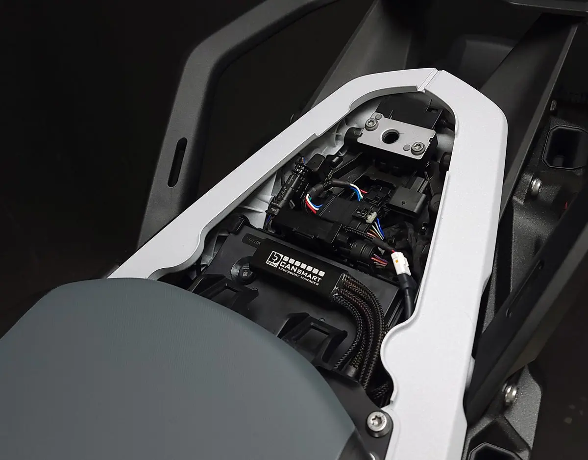 High/Low Sync: Permite alternar los faros auxiliares entre ajuste alto/bajo programable usando el interruptor de luz larga original. Control independiente de dos juegos de luces ON/OFF y ajuste de intensidad (día y noche) desde los interruptores originales del vehículo Modulación de luces: configure las luces auxiliares para aumentar su visibilidad ante otros conductores. Flash to Pass - ¿Necesita llamar la atención? Pulse el interruptor de luces largas tres veces y sus luces auxiliares parpadearán rápidamente tres veces. Cancelación con intermitente: esta función apaga la luz auxiliar correspondiente al activar el intermitente, evitando que la luz auxiliar sobrepase la señal. Destellos inversos con intermitentes de emergencia: hace parpadear las luces auxiliares en sentido inverso a los intermitentes de emergencia, aumentando la visibilidad en caso de avería Instalación Plug & Play de bocina: conecta fácilmente bocinas de alta potencia como nuestra SoundBomb™ sin arnés ni relé adicional Estroboscópico con bocina: al activar esta función, el software CANsmart™ hace parpadear las luces auxiliares al sonar la bocina. Compatible con bocina original o SoundBomb™. Tecnología "Smart Brake" activada por deceleración: CANsmart™ lee la velocidad del vehículo en tiempo real y activa la luz de freno auxiliar durante la deceleración antes de que toques el freno. Puedes ajustar la sensibilidad y la velocidad mínima de activación. Flash Pattern Braking: El CANsmart™ ofrece cuatro patrones de destello diferentes que hacen que nuestras luces de freno auxiliares sean aún más visibles para los conductores que circulan detrás. Puedes configurar las luces auxiliares para que destellen solo en frenadas fuertes, destellen continuamente mientras frenas o destellen cuatro veces rápidamente y luego permanezcan fijas (frecuencia legal en California). Circuit Function Selector: El selector de funciones de circuito en el software CANsmart le permite controlar cualquier accesorio en cualquiera de los cuatro circuitos. Haga clic en el icono del circuito para desplegar el menú y seleccione la función deseada. Fuente de alimentación conmutada: CANsmart™ proporciona una opción universal de "accesorio" con alimentación limpia de 12V conmutada. El accesorio conectado a este circuito se activa y desactiva con el encendido. Tiempo de retardo: puedes configurar los accesorios de este circuito para que permanezcan encendidos hasta 30 segundos después de apagar la moto. On Board Power: la opción de circuito "accesorio" es ideal para alimentar GPS, teléfono, ropa calefactable u otros dispositivos electrónicos.