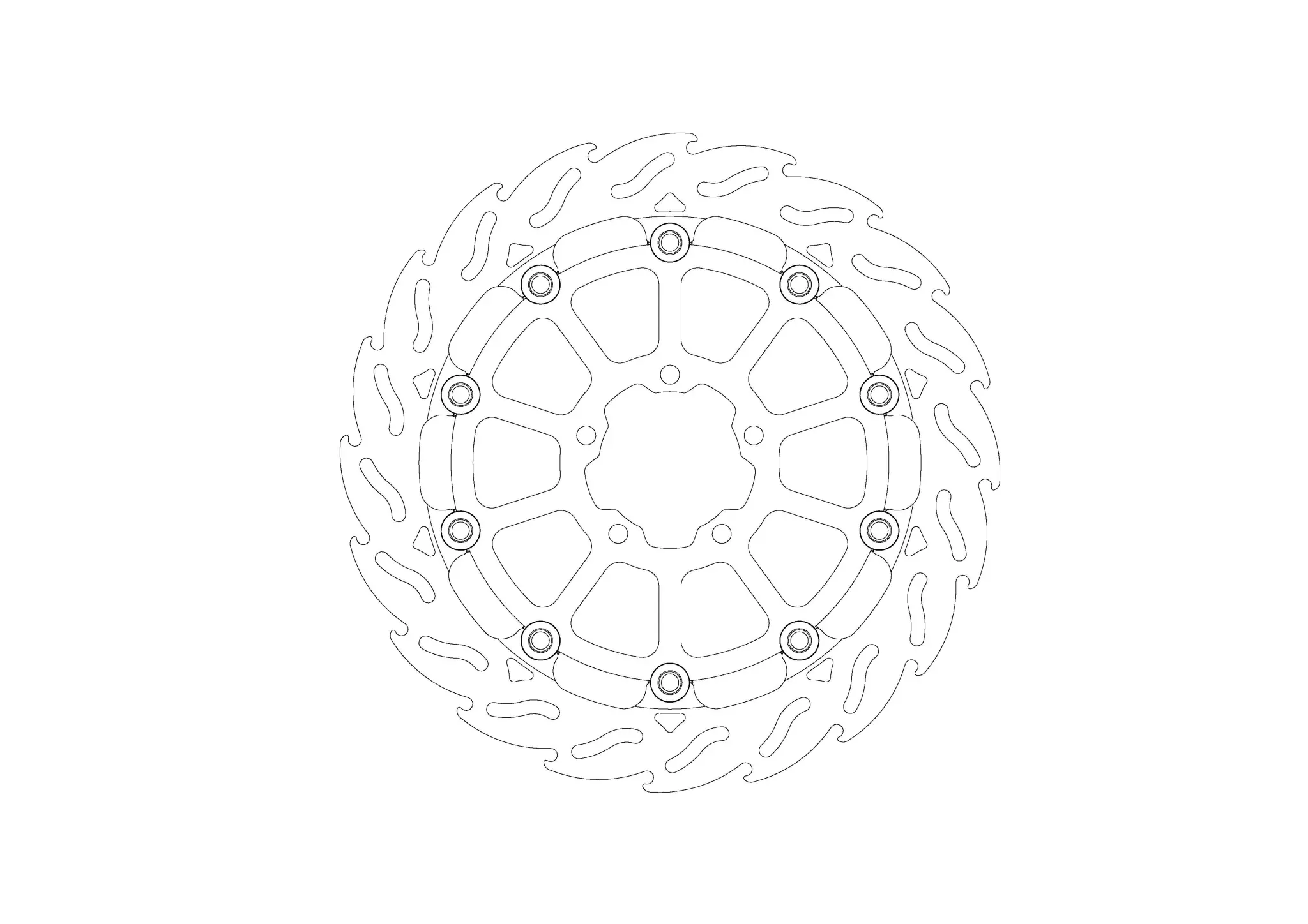 Disco flotante en diseño Flame con soporte interior de aluminio Anillo interior llamativo en negro Disco de freno Floating Flame delantero, portador interior de aluminio negro, KTM Duke 990 2024
