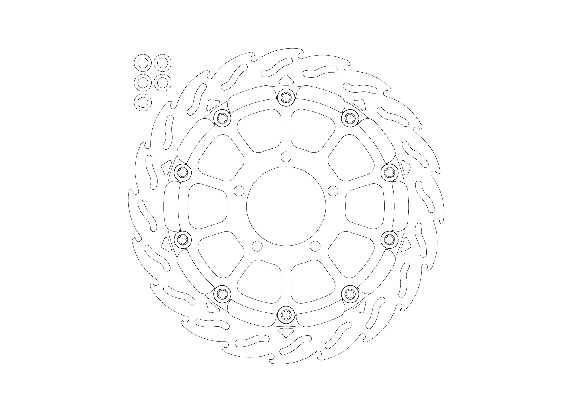 Disco flotante en diseño Flame con soporte interior de aluminio Anillo interior llamativo en negro Disco de freno flotante Flame, delantero, Kawasaki Z H2 20-25