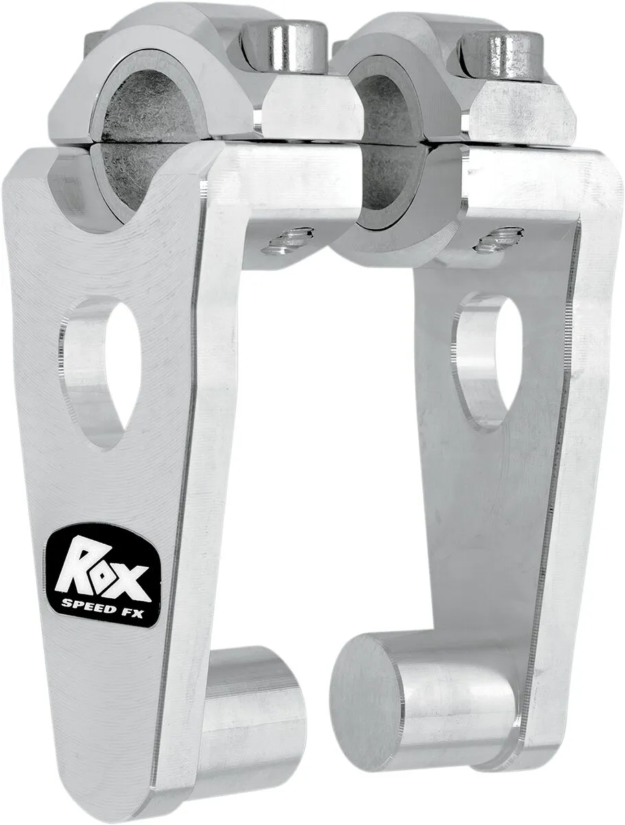 Diseño patentado de elevadores pivotantes, extremadamente universales gracias a su construcción en dos piezas que permite fijarlos en cualquier máquina con abrazaderas de manillar de 7/8". Permite sujetar un manillar estándar de 7/8" de diámetro o, al retirar los reductores de 7/8", instalar un manillar de aluminio de 1-1/8"; los reductores se bloquean en los elevadores para evitar deslizamientos y los dientes serrados ofrecen máxima sujeción al manillar Los elevadores se sujetan con las abrazaderas originales de 7/8" y permiten subir el manillar 2", 3-1/2" o 5" (según el tamaño) con ajuste pivotante hacia delante y atrás. La posición externa de Rox también garantiza una durabilidad excepcional. Fabricado en EE. UU. Es posible que se requieran cables más largos al instalar elevadores de manillar.