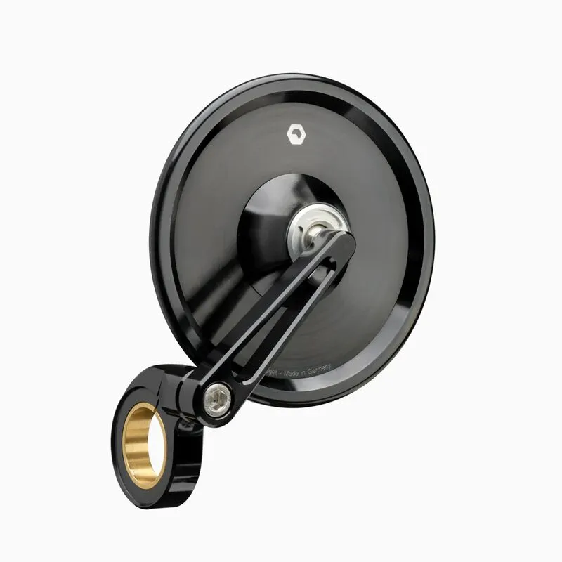 - Cuerpo, brazo y abrazadera del espejo mecanizados en CNC a partir de aluminio macizo y anodizados de alta calidad. Todos los tornillos son de acero inoxidable. La rótula precisa permite un ajuste cómodo y estable. ¡No hay riesgo de rotura ni desprendimiento del cristal!