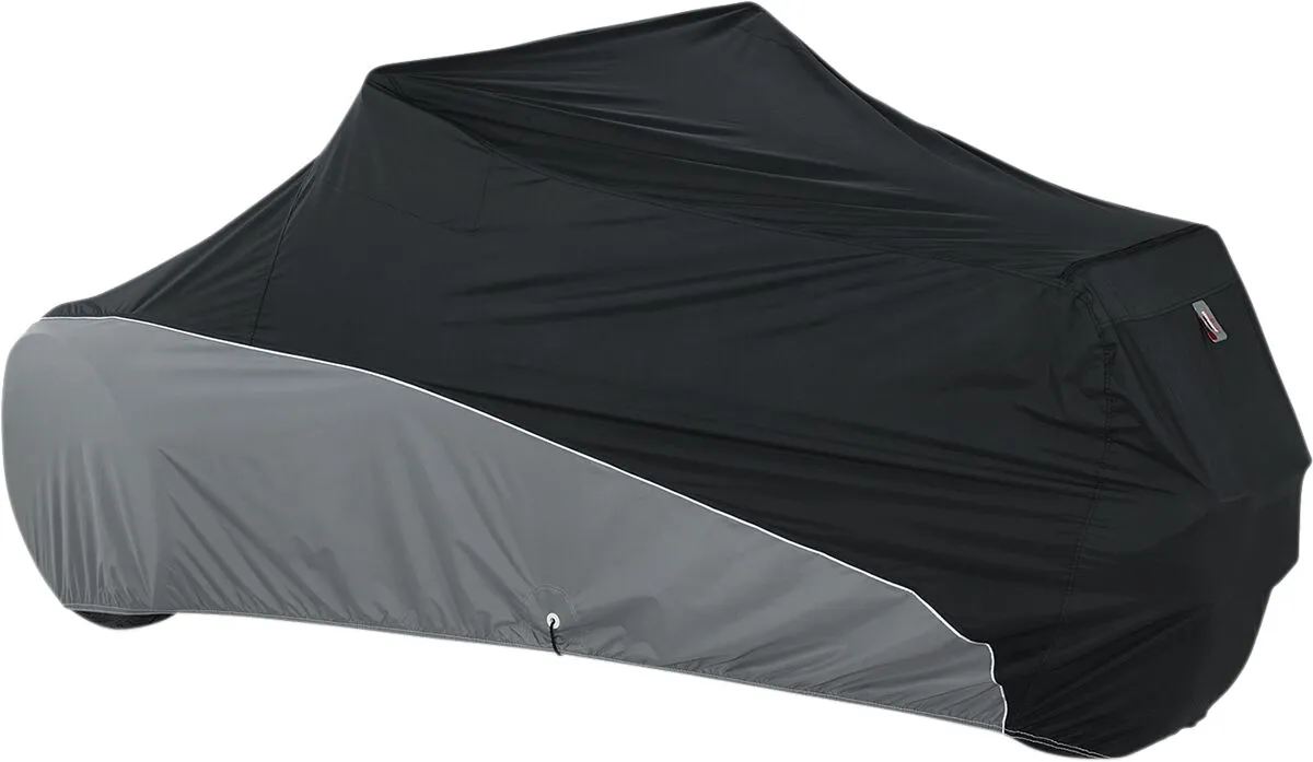 Poliéster recubierto de poliuretano resistente al agua, protege contra el clima, suciedad y contaminación Estabilizado UV para maximizar la vida útil del tejido y minimizar la decoloración por el sol El protector térmico protege contra tubos de escape calientes y permite aplicar la funda de inmediato Diseño de ajuste entallado Construcción ligera en poliéster recubierto de poliuretano Bolsa expandible para parabrisas Doble costura y cierre de cuatro pliegues entrelazados para máxima durabilidad y estanqueidad Forro SoftTek para parabrisas que previene rayaduras Ojales grandes e inoxidables que evitan desgarros Dobladillo elástico cosido y cordón para un ajuste personalizado y seguro Logotipo reflectante de alta visibilidad aumenta la seguridad al aparcar Bolsa de almacenamiento compacta y práctica, fácil de transportar Garantía limitada de 5 años