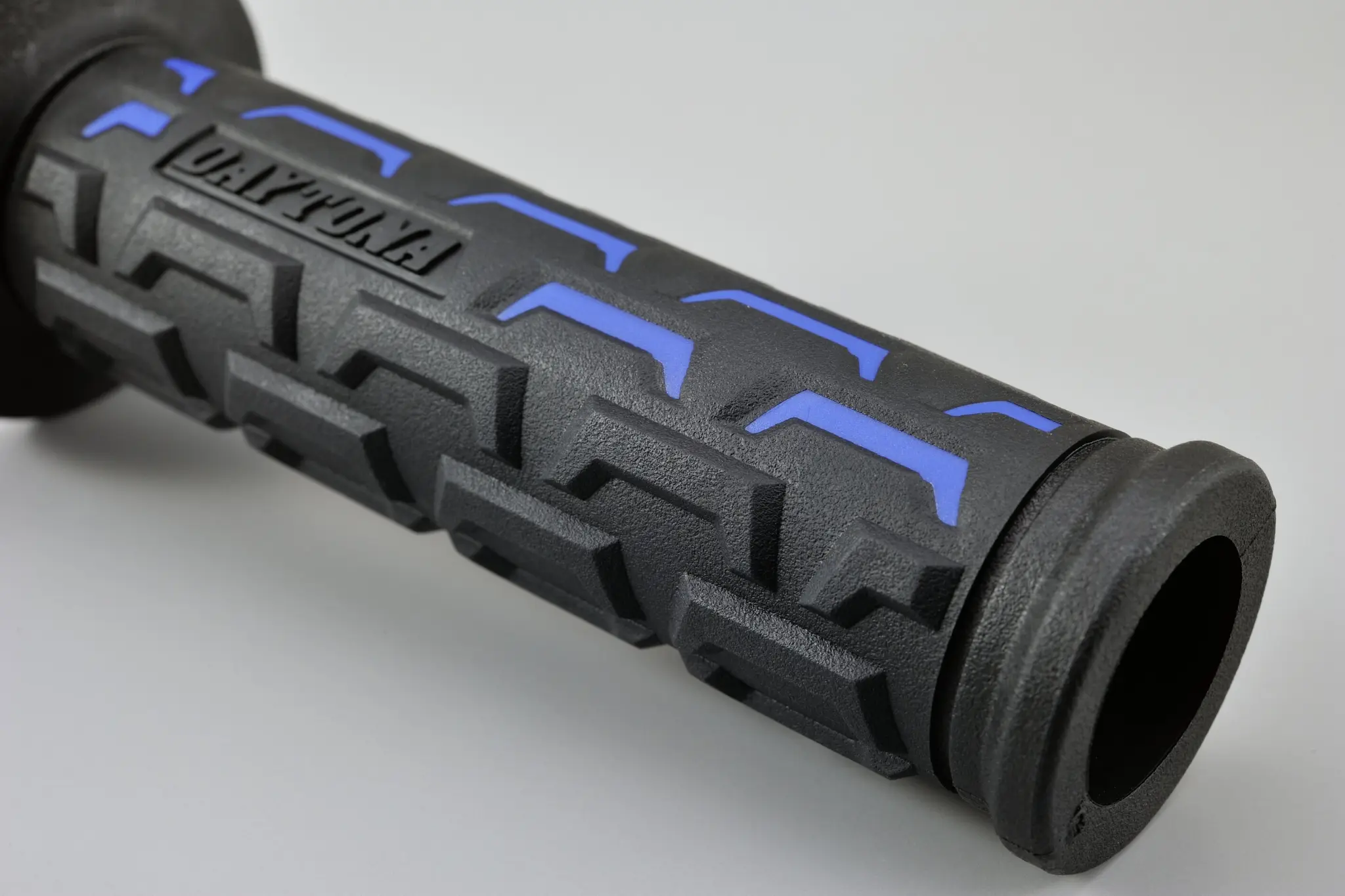 Marca: DAYTONA Referencia de proveedor: 25175 Características: con extremos abiertos Color/acabado: Negro, Azul Estilo: Cónico Longitud: 12,2 cm (4-3/4") Modelo: Grippy Grip Nombre de producto: Puños Para manillar con diámetro: 22 mm (7/8") Unidades: Pareja