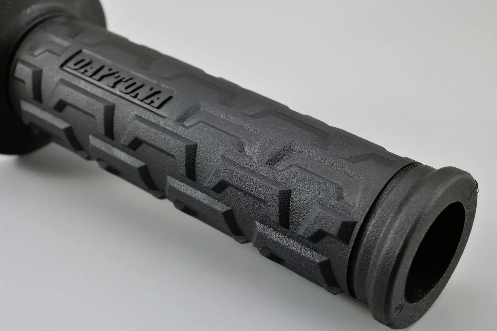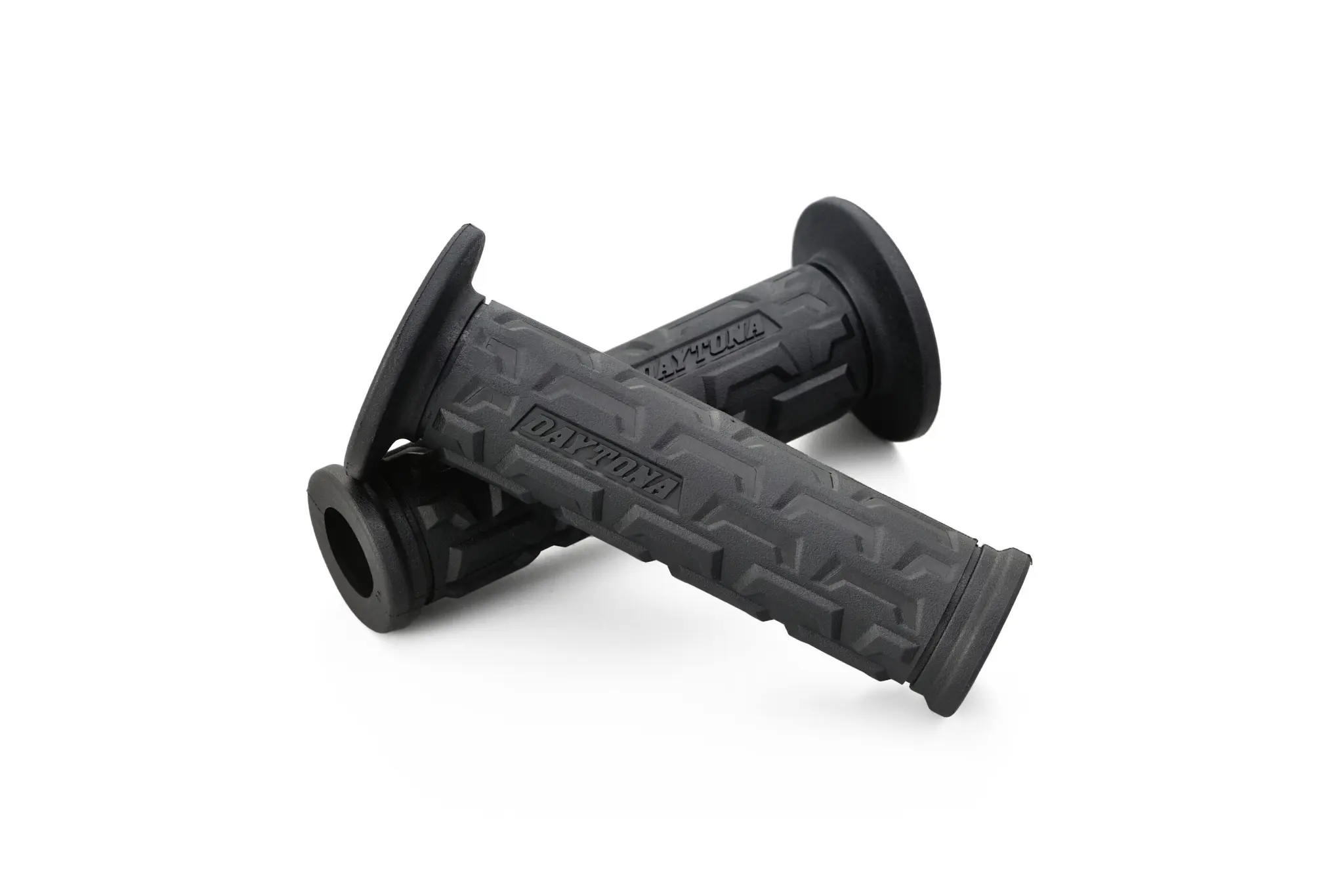 Marca: DAYTONA Referencia de proveedor: 25180 Características: con extremos abiertos Color/acabado: Negro Estilo: Cónico Longitud: 12,2 cm (4-3/4") Modelo: Grippy Grip Nombre de producto: Puños Para manillar con diámetro: 22 mm (7/8") Unidades: Pareja