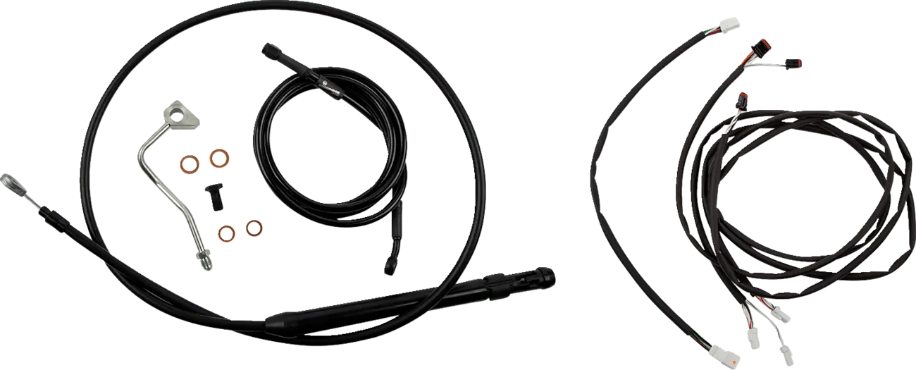 • Incluye todo lo necesario para instalar el manillar: cable de embrague, latiguillo de freno, kit de extensión para el mazo principal, tubo termorretráctil y kit de extensión para Throttle-By-Wire