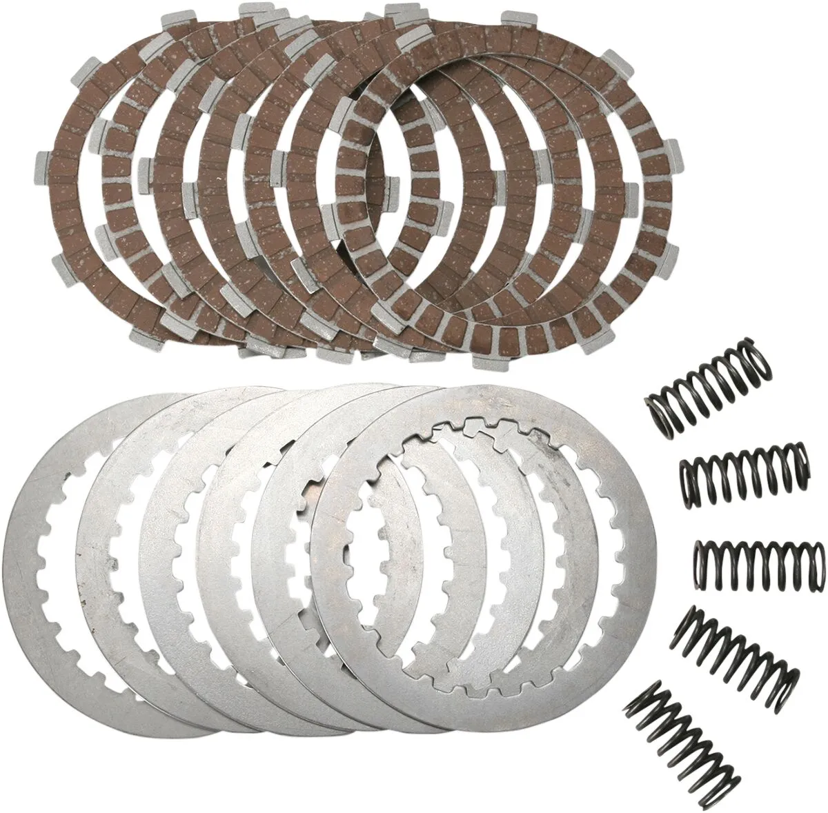 Máximo rendimiento sin pérdida ni deslizamiento Placas de fricción listas para montar, no es necesario pre-aceitar Diseñado para garantizar una entrega de potencia ultrasuave Más duraderas que los discos de embrague OEM Material de fricción para altas temperaturas que garantiza un rendimiento sin desvanecimiento. Los resortes de embrague están granallados para máxima durabilidad, tratados térmicamente y enrollados con precisión en cromo-silicio de alta calidad Muelles diseñados individualmente para cada aplicación, garantizando manejo suave y excelente tacto en la maneta Kits disponibles con o sin discos de fricción de acero Placas de fricción de acero fabricadas con tolerancias precisas Las placas están tratadas térmicamente para máxima durabilidad. No enturbia ni contamina el aceite Ambos estilos de kit de embrague incluyen discos de fricción y muelles (salvo indicación contraria en el texto específico de la pieza) Sin muelles.