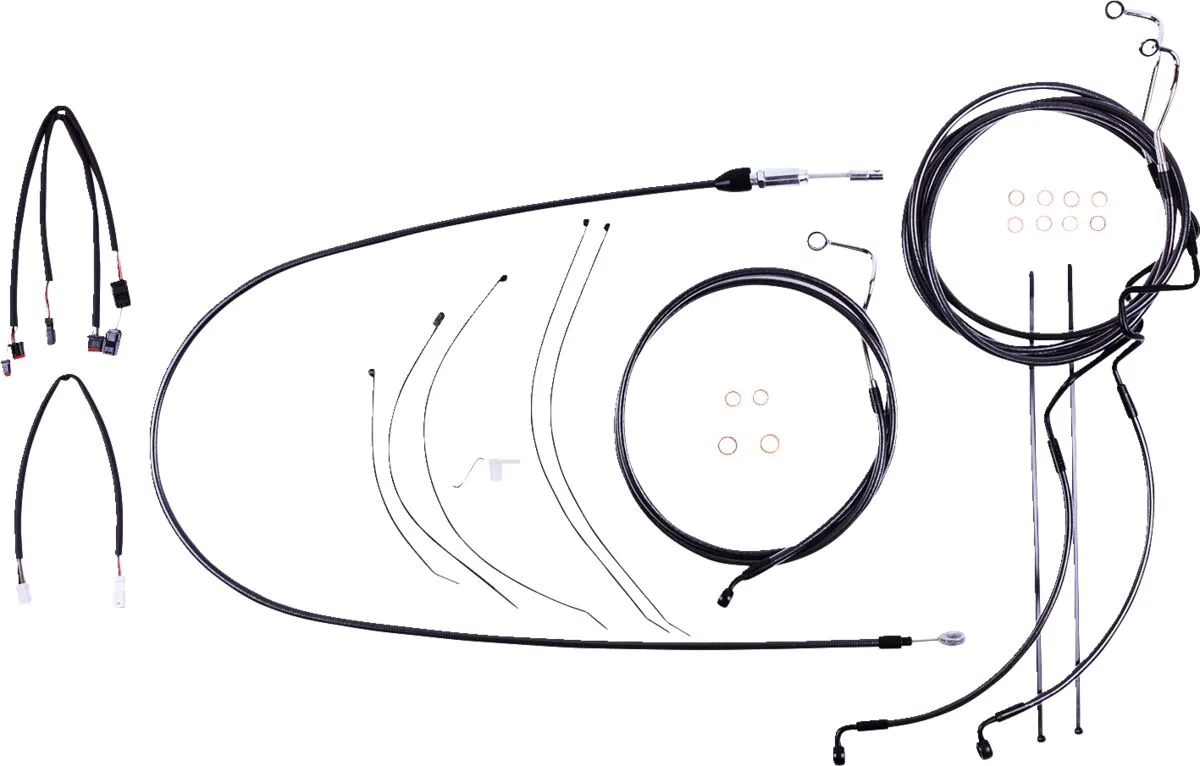 • El kit incluye cables de acelerador y ralentí para extensiones throttle-by-wire, cable de embrague o línea hidráulica, latiguillos de freno, arandelas de cobre, tornillería y el cableado necesario para la extensión de intermitentes, salvo indicación contraria