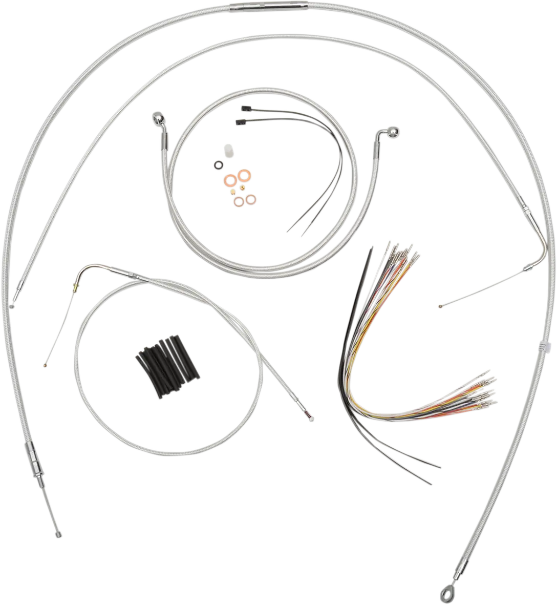 - El kit incluye cables de acelerador y ralentí para extensiones throttle-by-wire, cable de embrague o línea hidráulica, latiguillos de freno, arandelas de cobre, herrajes y cableado necesario para la extensión de intermitentes
