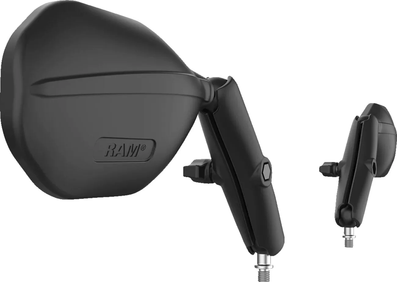 Fabricado en aluminio de calidad marina con recubrimiento en polvo, componentes de acero inoxidable y material compuesto de alta resistencia para máxima durabilidad y fiabilidad en los entornos más exigentes Tecnología de doble rótula para ajuste casi infinito del sistema de montaje RAM® y absorción de vibraciones Componentes RAM® 100% genuinos para conexiones seguras y calidad duradera del sistema Espejos accesorios robustos diseñados para máxima visibilidad Componentes de montaje RAM® con garantía de por vida Medidas del cristal del espejo: 5-1/4" ancho x 3,44" alto El kit incluye: 2 bases de bola RAM® B tamaño M10-1.25 2 adaptadores: hembra M10-1.25 a macho M10-1.5 2 brazos RAM® largos tamaño B 1 - RAM® Tough-Mirror™ izquierdo 1 - RAM® Tough-Mirror™ derecho Fabricado en EE. UU.