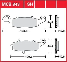 Marca: TRW Referencia de proveedor: MCB843 Estilo: Multiusos Grosor: 10,9 mm (27/64") Material: Cerámico Nombre de producto: Pastilla de freno Tipo: Base orgánica Unidades: Set de 2