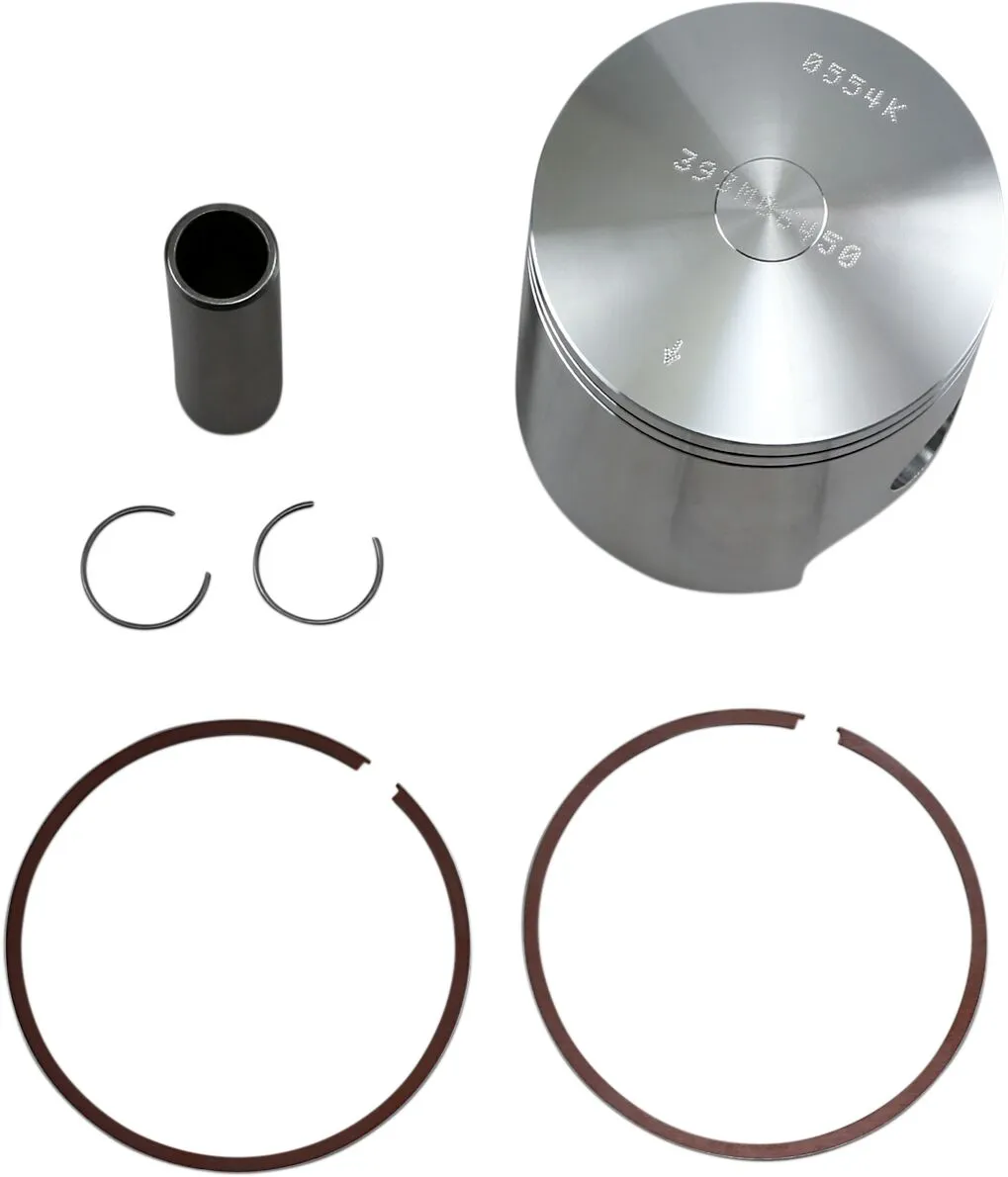 La mayoría de los pistones Wiseco de 2 tiempos están forjados en barra de alto contenido de silicio Mayor resistencia y menor expansión a altas temperaturas Todos los pistones Wiseco High-Performance incluyen aros, bulones y seguros Los tipos de aros Wiseco no son intercambiables (por ejemplo, CD no es compatible con LC) y solo sirven para pistones Wiseco Los pistones Wiseco solo pueden montarse con segmentos Wiseco. Para inducción por láminas.