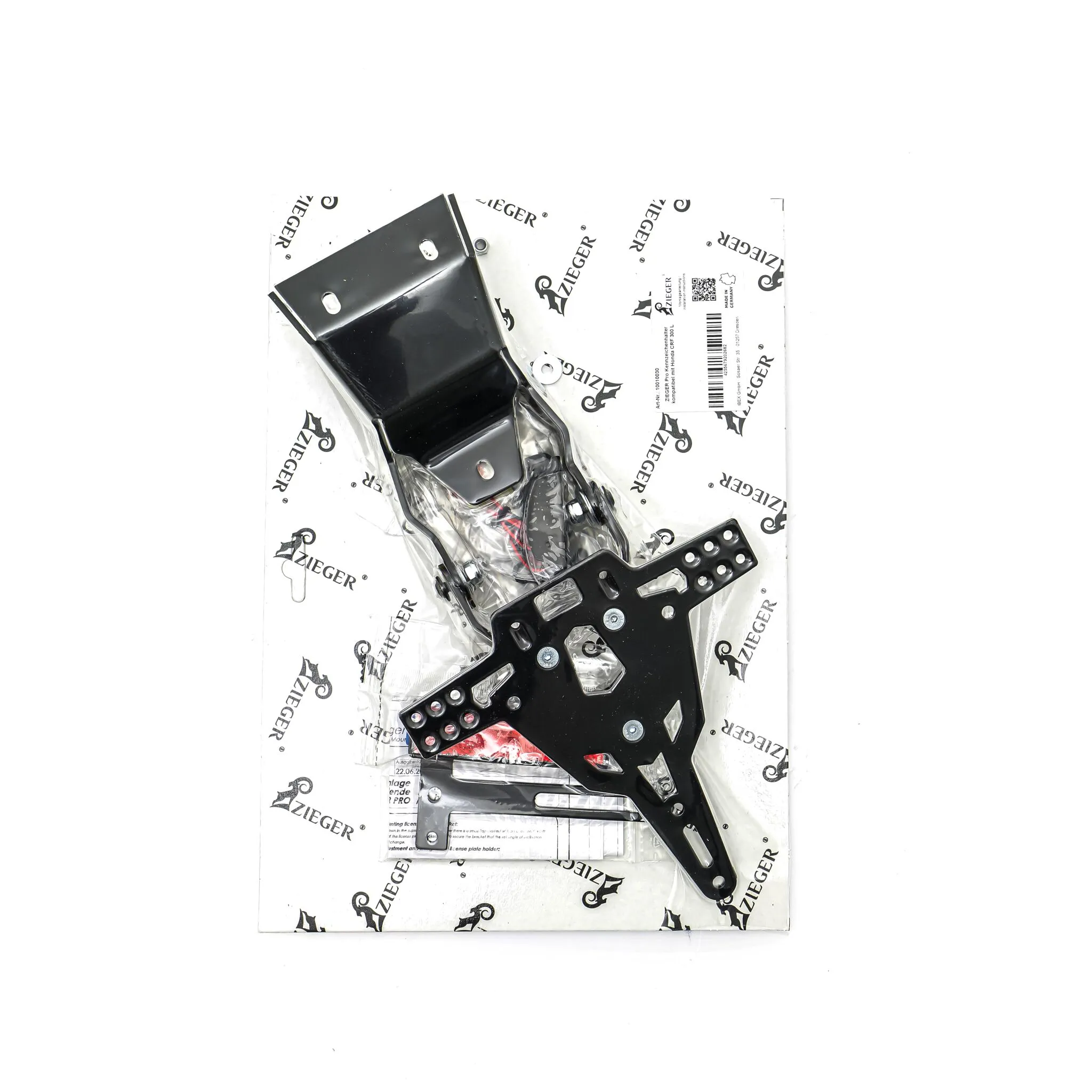 Marca: ZIEGER Referencia de proveedor: 10010030 Color de alojamiento: Negro Curvatura marco para matrícula: Plano Estilo: A Estilo de montaje: Montaje directo Forma: Triangular Material de alojamiento/funda: Aluminio Nombre de producto: Soporte de matrícula Para marca: Honda Posición de montaje: Trasera Tipo: con luz superior de matrícula Tipo de bombilla: LED Unidades: Kit