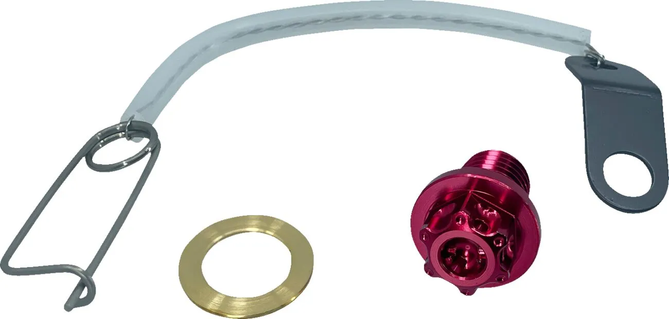 Pernos mecanizados CNC en aluminio de alta calidad Imán integrado que recoge partículas metálicas en el aceite Orificios pretaladrados en el perno facilitan la instalación del alambre de seguridad Incluye tornillo, alambre de seguridad, pasador y arandela
